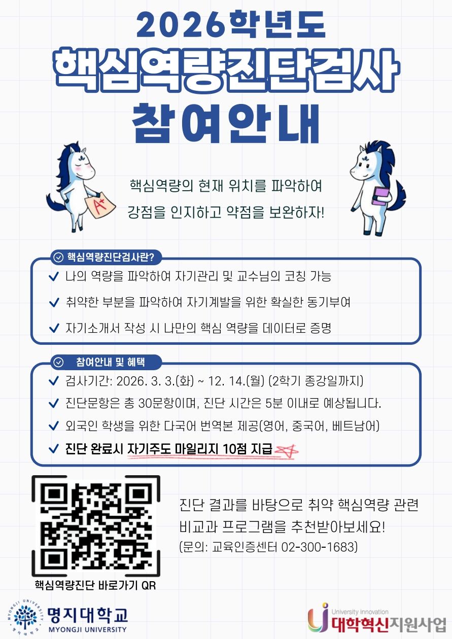 [교육인증센터] 2026학년도 재학생 6대 핵심역량 진단 검사 안내